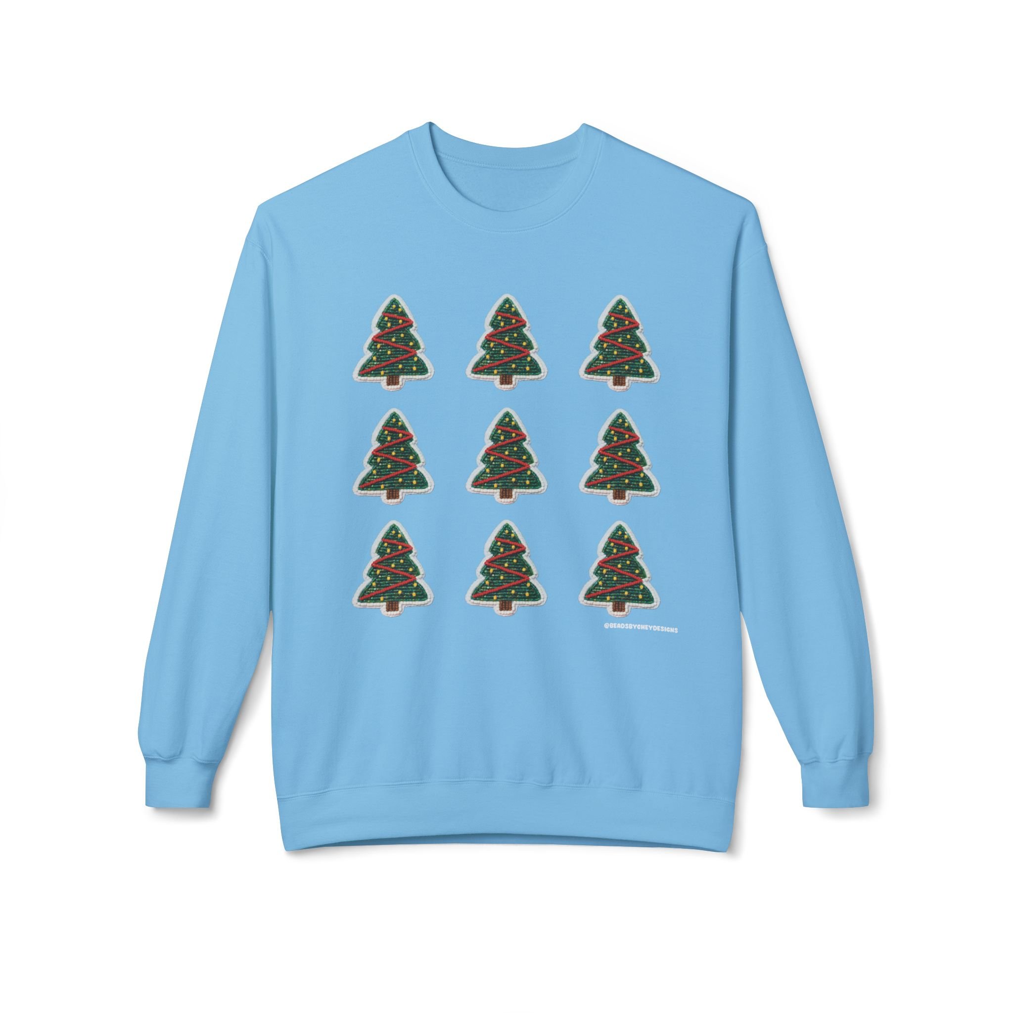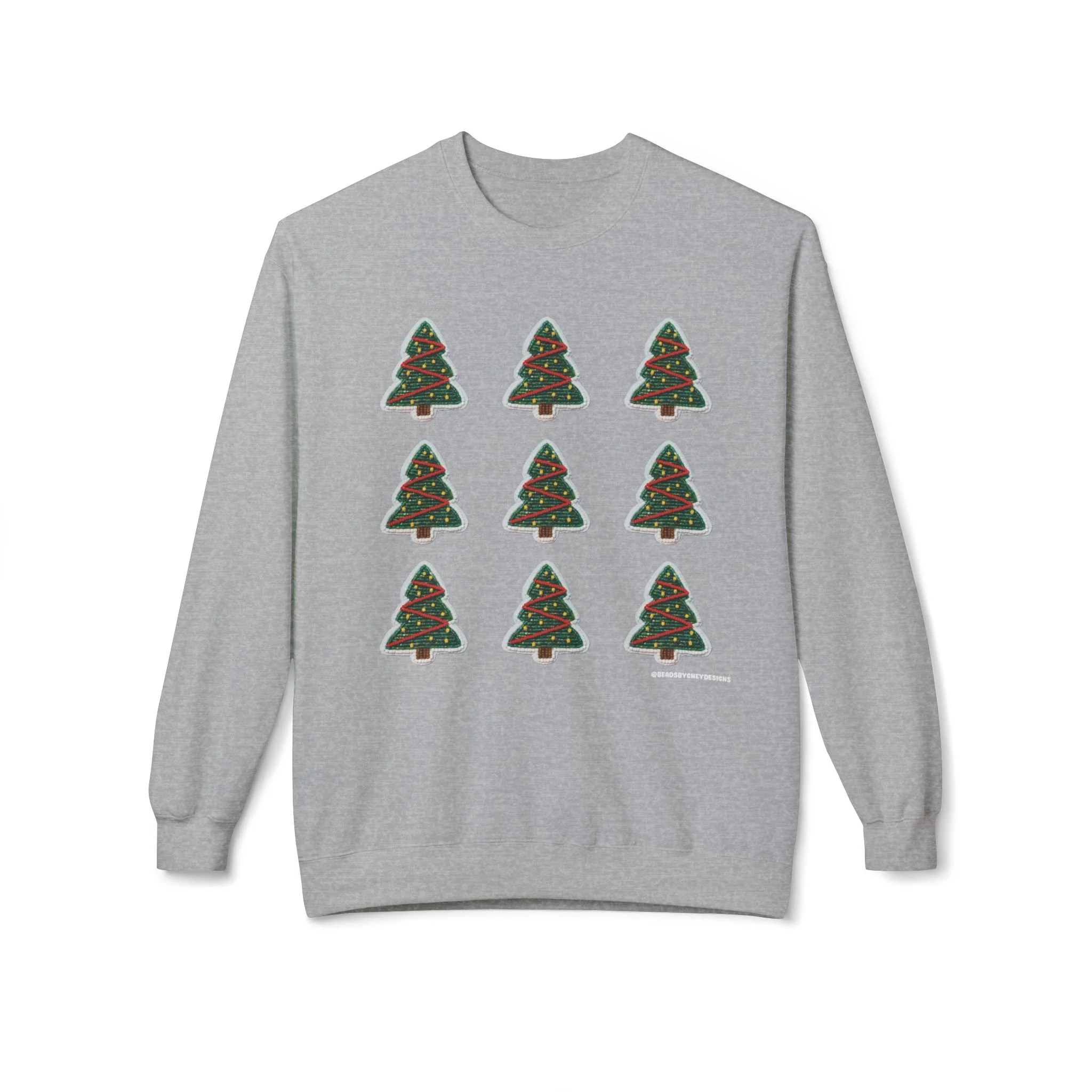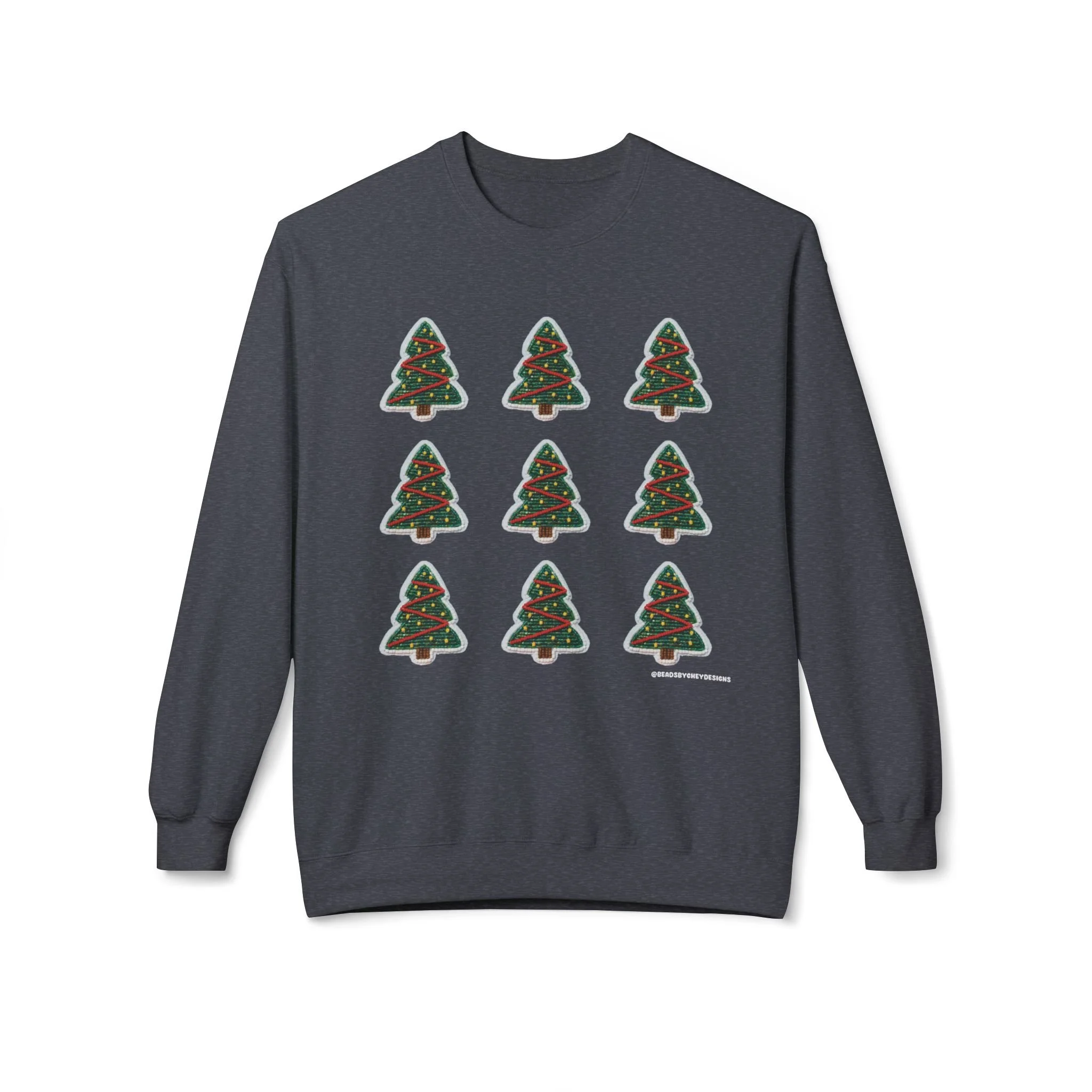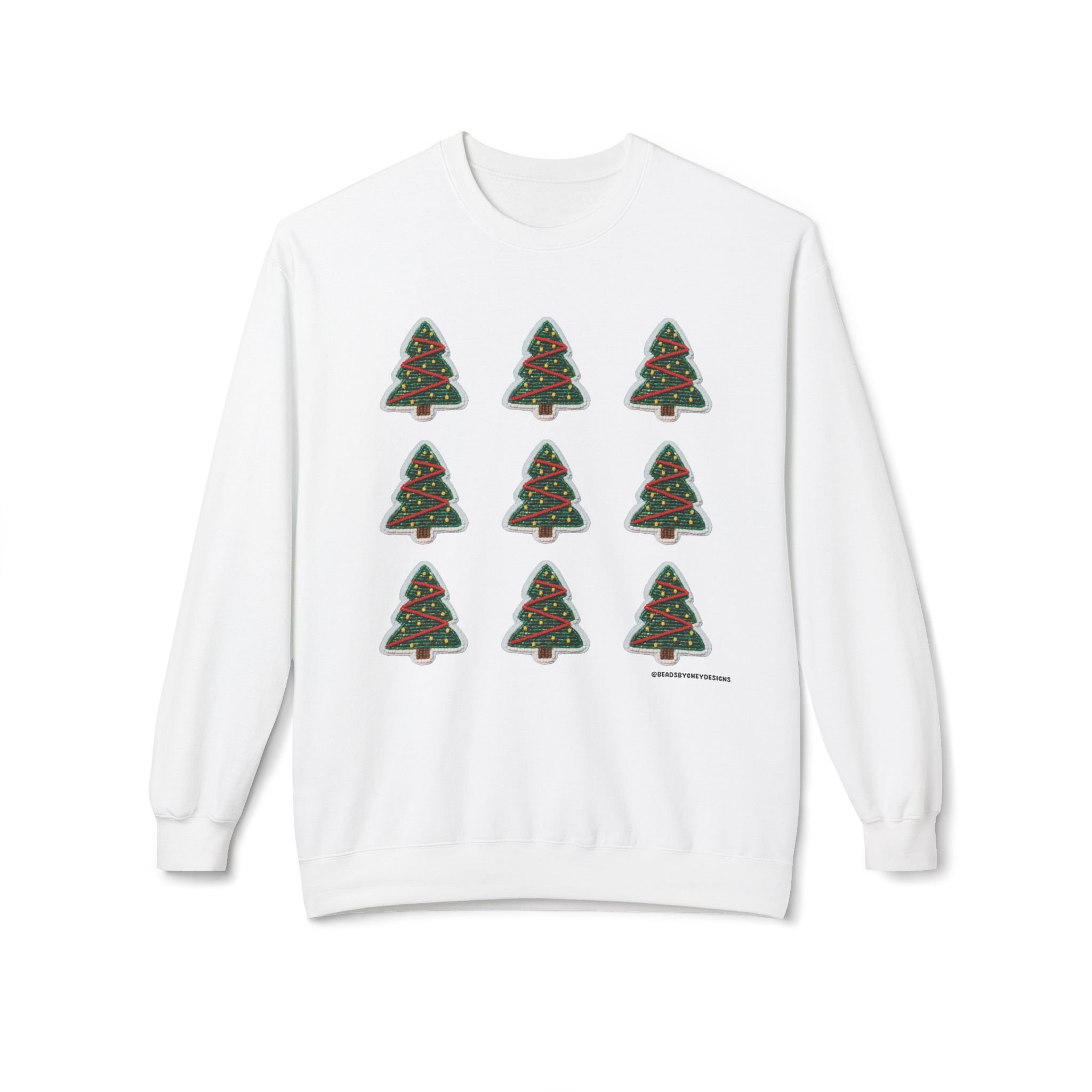 Soft, cozy, and quietly festive — this crewneck brings a calm holiday mood without the noise. Nine small, hand-drawn Christmas trees form a neat grid across the chest, each tree trimmed with simple red and green accents. The medium-heavy fabric and relaxed dropped shoulders make it feel like a warm hug on crisp evenings. Wear it while wrapping gifts, walking through string-lit streets, or sipping spiced drinks by a window. It’s comfortable enough to lounge in and neat enough to layer under a coat when you head out. The subtle, artful print speaks to someone who prefers understated seasonal style over loud graphics.