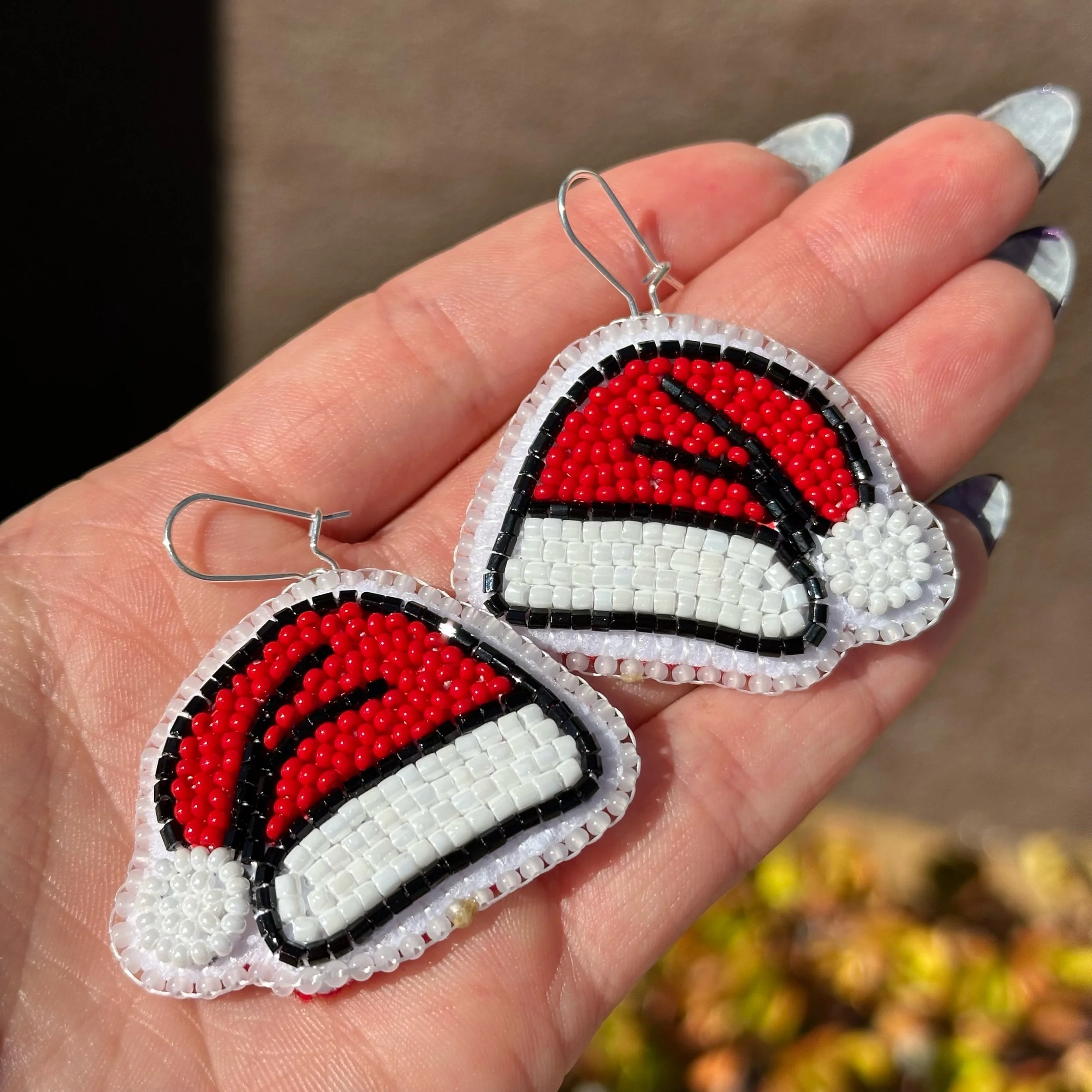 Image 1 of 1 Beaded Santa Hats $68.00 Sold Out! Santa hat shaped earrings with red, black & white beads. Backed with felt and silver plated earring hooks. Sold Out! Added! Santa hat shaped earrings with red, black & white beads. Backed with felt and silver plated earring hooks.