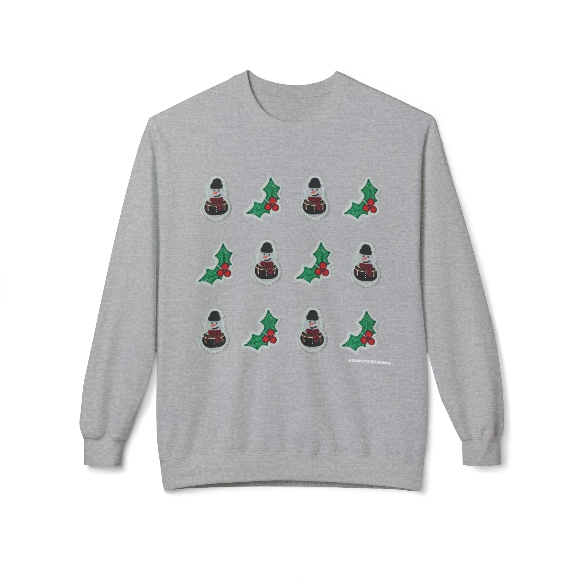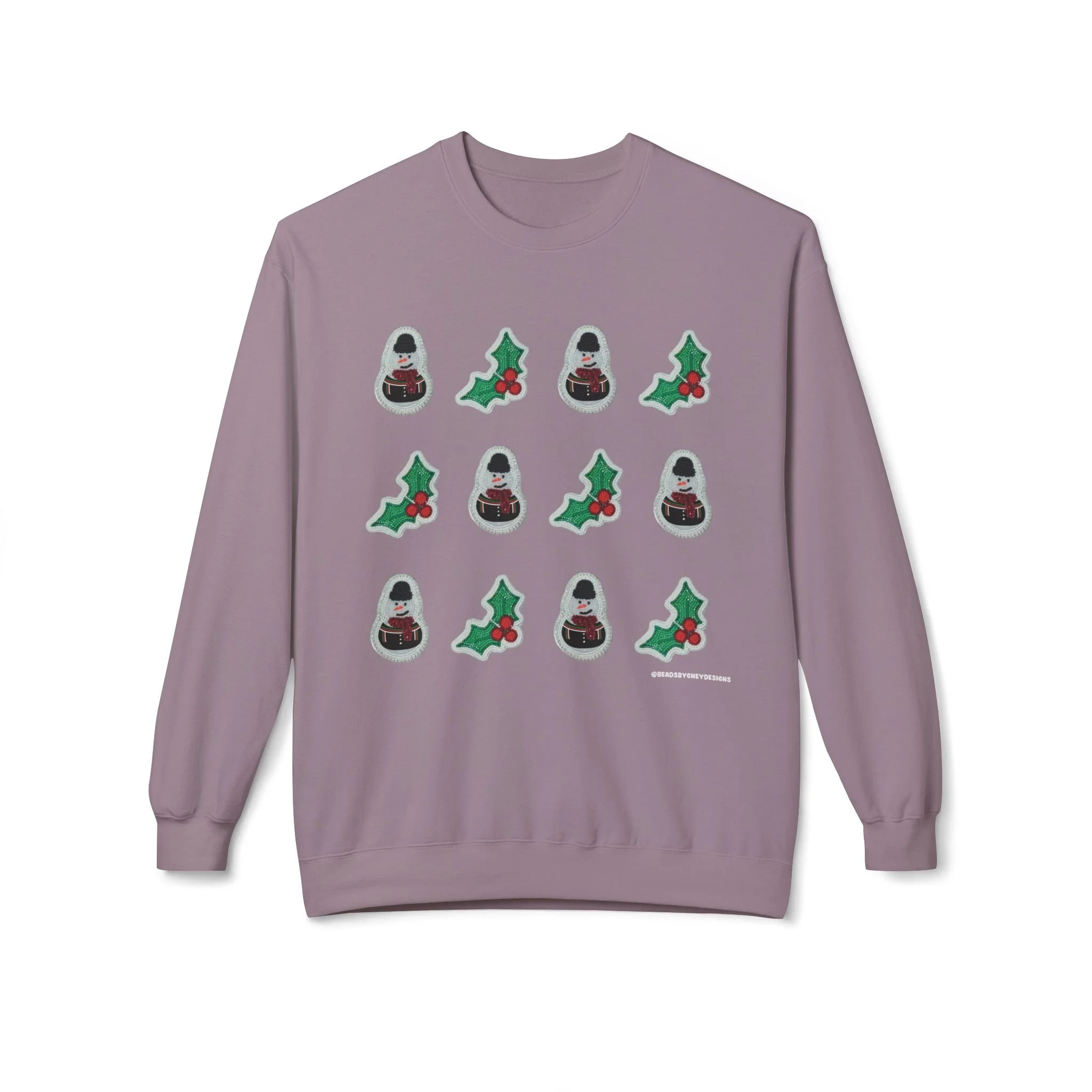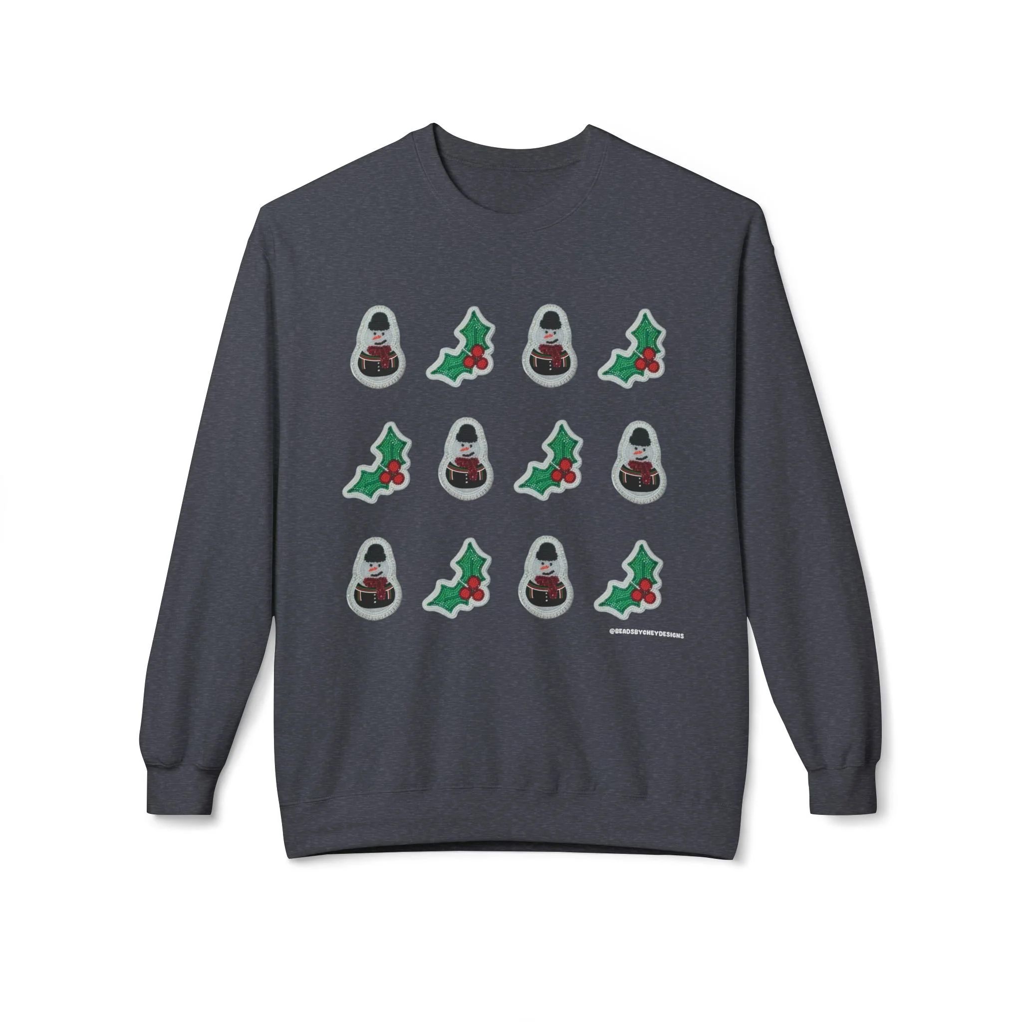 This cozy crewneck brings quiet holiday cheer without shouting. Soft, midweight fleece and a relaxed dropped-shoulder cut make it a go-to layer for slow mornings, tree-trimming sessions, and evenings by low light. A subtle repeating motif of tiny seasonal icons sits across the chest, adding handcrafted charm that reads homespun rather than flashy. Wear it when you want warmth that feels familiar and an understated nod to the season — layered over a tee for daytime errands or paired with lounge pants for a night of movies and mulled drinks.