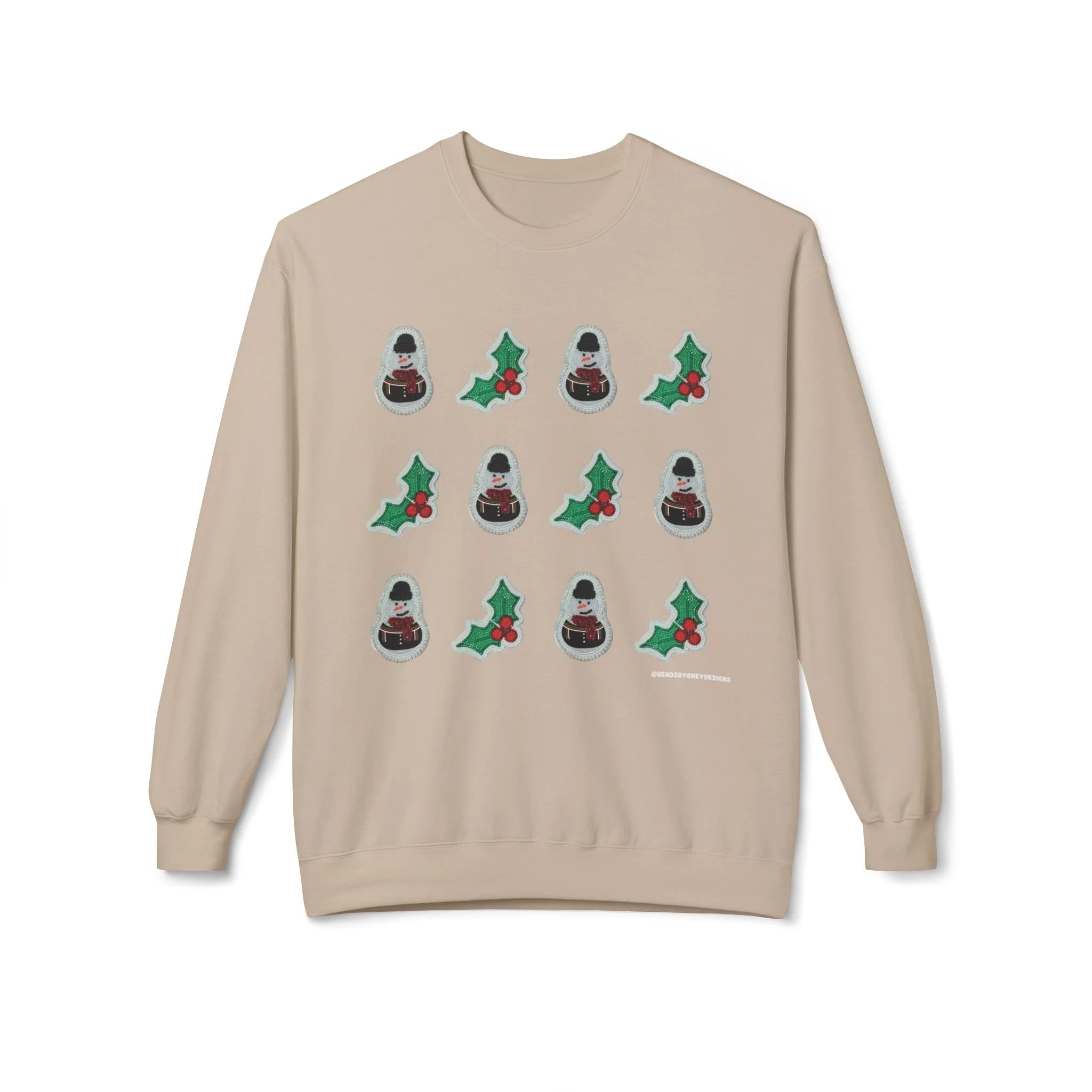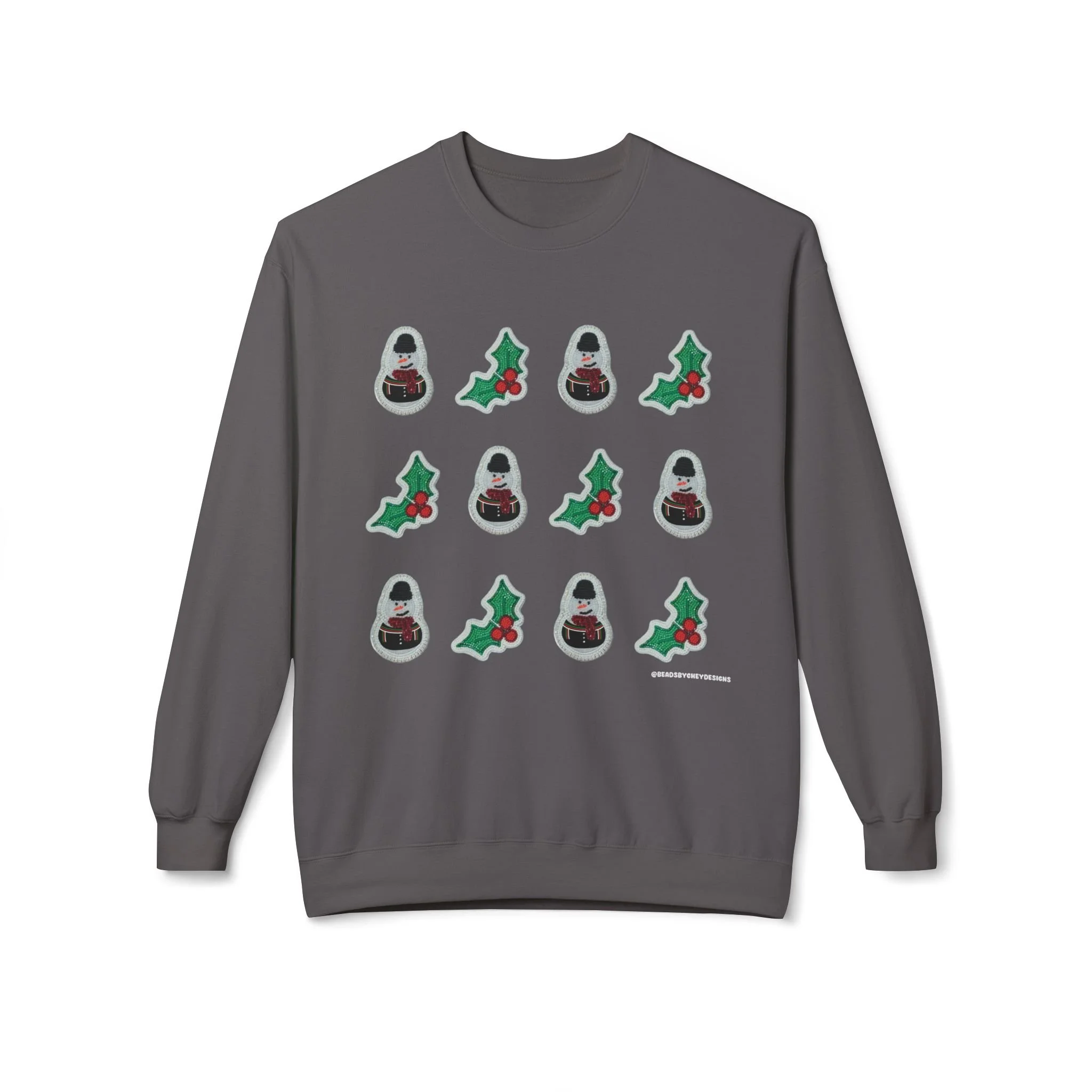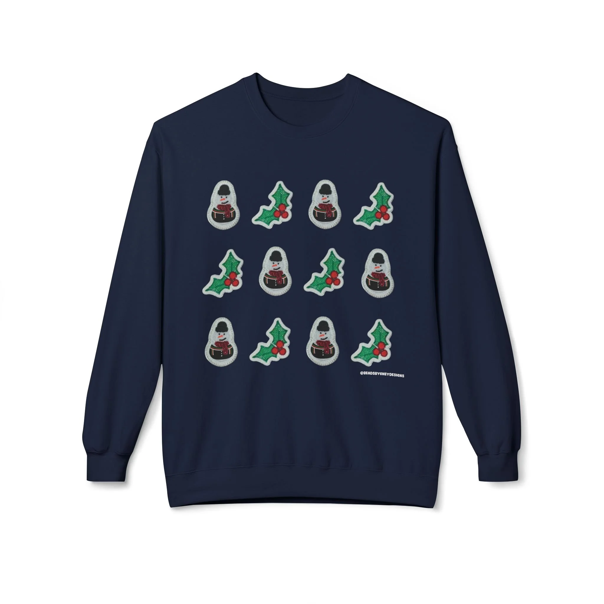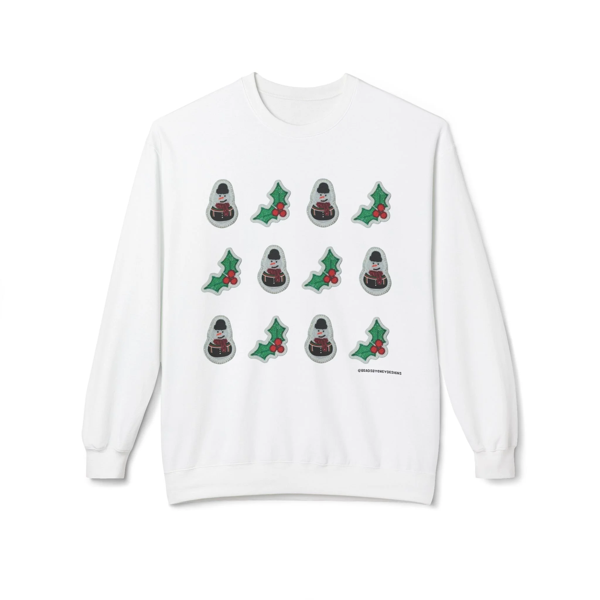 This cozy crewneck brings quiet holiday cheer without shouting. Soft, midweight fleece and a relaxed dropped-shoulder cut make it a go-to layer for slow mornings, tree-trimming sessions, and evenings by low light. A subtle repeating motif of tiny seasonal icons sits across the chest, adding handcrafted charm that reads homespun rather than flashy. Wear it when you want warmth that feels familiar and an understated nod to the season — layered over a tee for daytime errands or paired with lounge pants for a night of movies and mulled drinks.