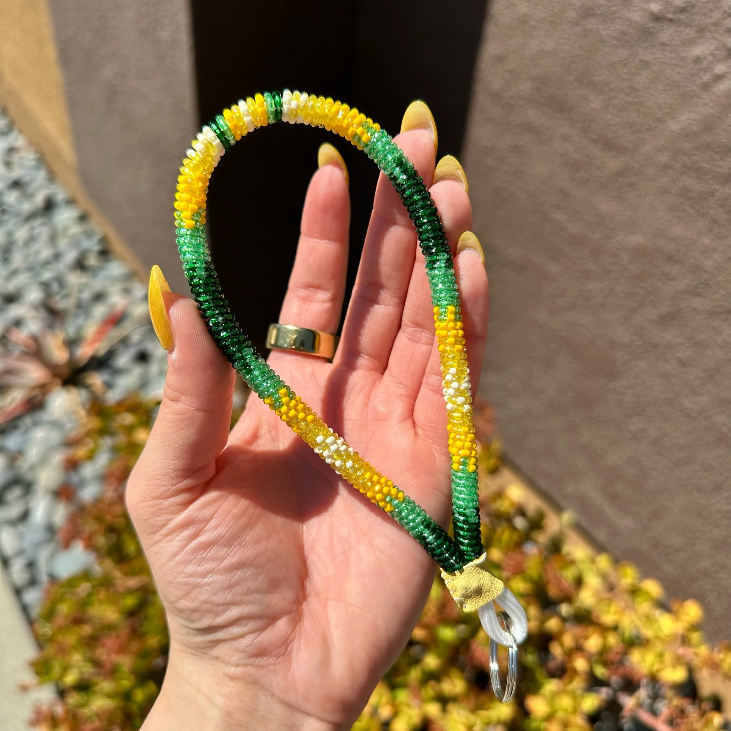 Image 1 of 1 Spring Green Mini Keychain $45.00 Mini sized keychain with dark green, light green, yellow & eggshell beads. Finished with buckskin & silver keyring. Add To Cart Added! Mini sized keychain with dark green, light green, yellow & eggshell beads. Finished with buckskin & silver keyring. Midnight Flame Keychain $50.00 Add Added! Classic Keychain $50.00 Add Added! Blue Flame Mini Keychain $45.00 Add Added! Neapolitan Mini Keychain $45.00 Add Added!